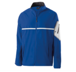 * 90% polyester/10% spandex, 4-way stretch woven fabric * Woven label * Front zipper with reflective zipper pull and matte tips * Contrast color sleeve pocket with silver media port and reflective metallic silicone welded zipper * Raglan sleeves for maximum mobility * Locking welt front pockets * Dual inside pockets * Spandex bound cuff * Open bottom with adjustable elastic hidden drawcord * Water-repellent